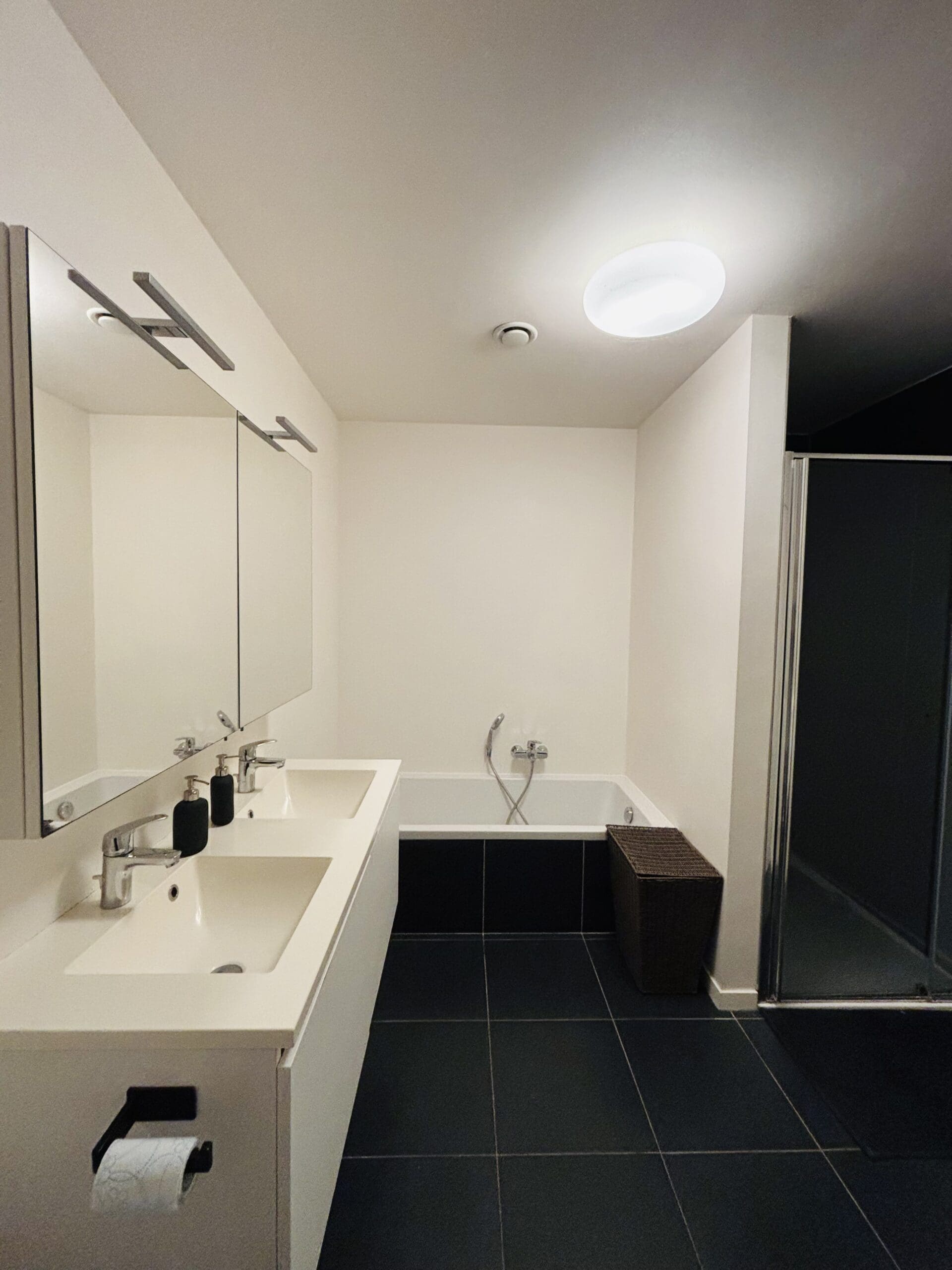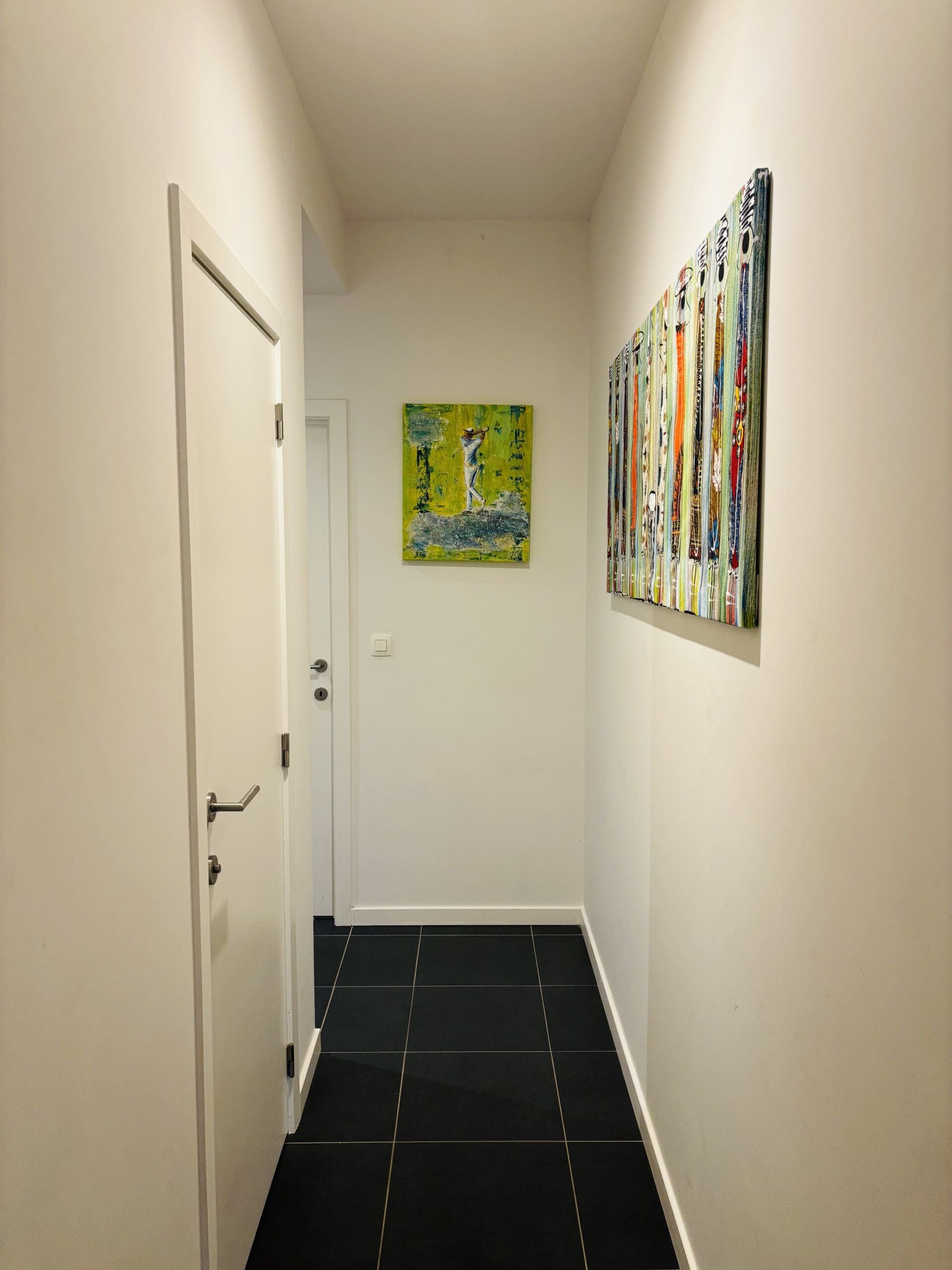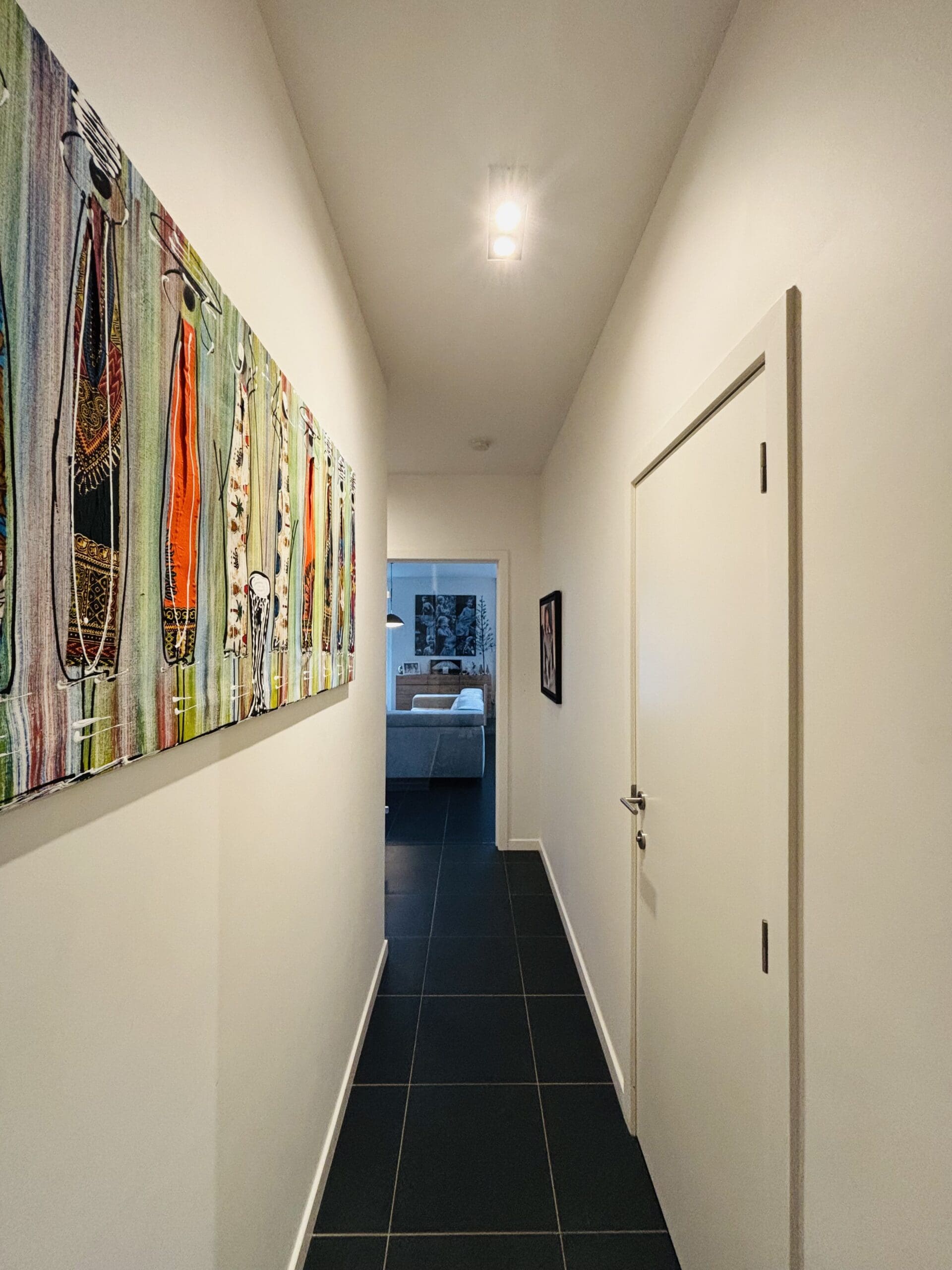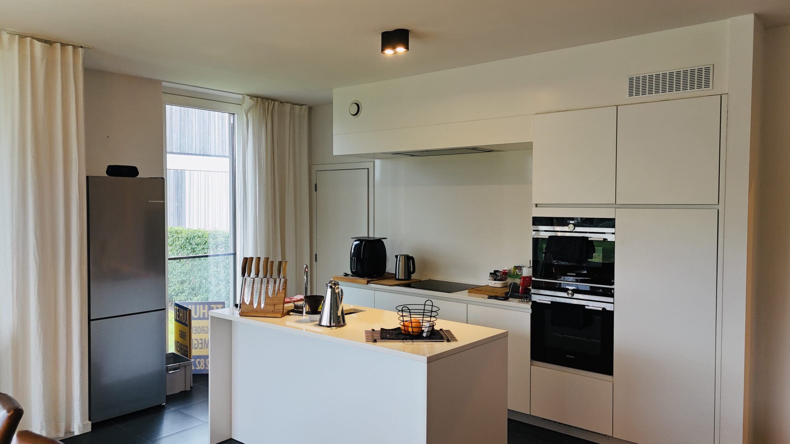 Indeling: inkomhal, gastentoilet, aparte berging met technieken, ruime badkamer voorzien van inloopdouche, bad, 2 de toilet en dubbele wastafel, 2 volwaardige slaapkamers en een woonkamer met open keuken die uitgeeft op het zonnige terras met zicht op de gemeenschappelijke tuin en vijver. Alle ruimtes beschikken over vloerverwarming en ventilatie type D, hierdoor wordt het binnenklimaat geoptimaliseerd en energie bespaard.