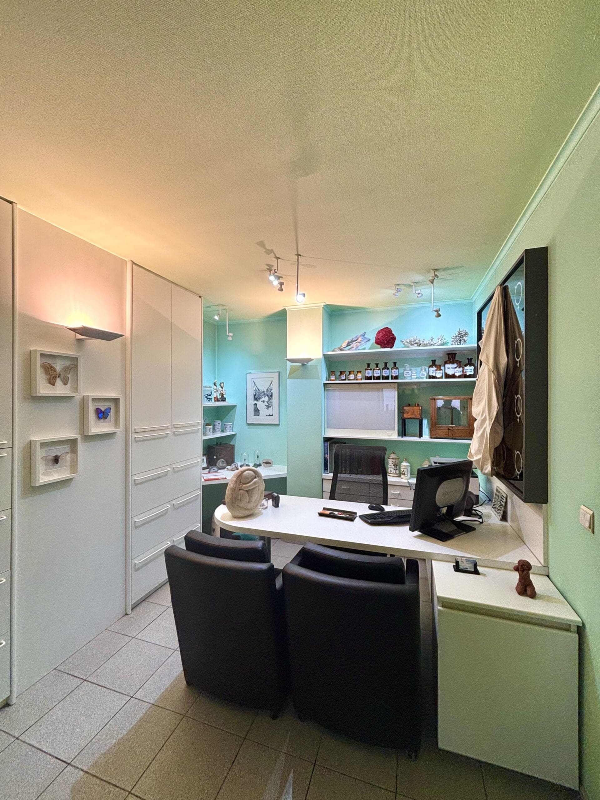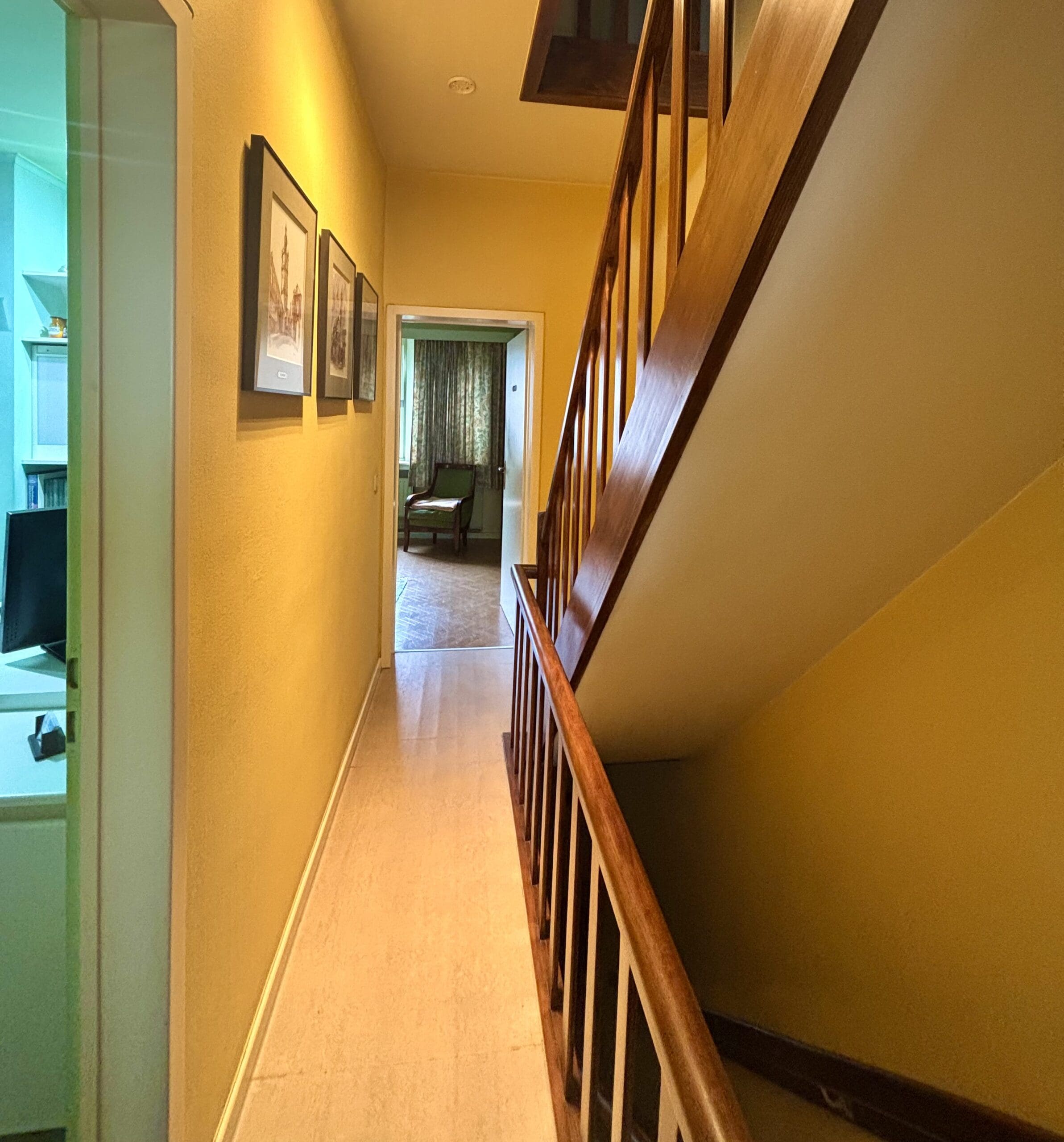 Achteraan geniet u van een diepe, groene tuin met terras, tuinhuis en vijver – een zeldzame troef op deze locatie. Binnen beschikt de woning over 4 volwaardige slaapkamers en een ruime bureau, volledig ingericht als praktijkruimte, ideaal voor het uitoefenen van een zelfstandig beroep of thuiswerk.